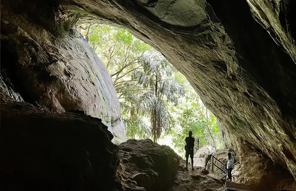 Belilena Cave, near Kitulgala, is one of Sri Lanka’s most important prehistoric archaeological sites, providing rare insight into early human life on the island. Scientific excavations conducted by the Archaeological Department of Sri Lanka between 1978 and 1983 revealed rich cultural, faunal, and human remains dating from approximately 30,000 to 9,000 years before present. Discoveries include bone tools, evidence of controlled fire use, and remarkably early geometric microlithic stone tools, placing Belilena among South Asia’s oldest known prehistoric sites. Animal remains show that its occupants, known as Balangoda Man, hunted deer, wild boar, monkeys, and reptiles, while also relying on plants, snails, and aquatic resources. Evidence of a salt trade network with coastal communities existed as early as 30,000 years ago. Human skeletal remains dated to 16,000 years ago have been crucial for anthropological research. Today, Belilena is protected as an Archaeological Reserve under Sri Lanka’s Antiquities Ordinance.
